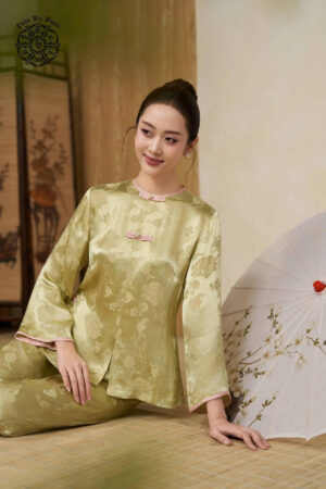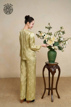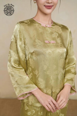 - Sắc lục an nhiên là mẫu pháp phục mang tinh thần dịu dàng, thanh tịnh trang nhã, được thiết kế cho người phụ nữ yêu sự an nhiên trong từng hơi thở